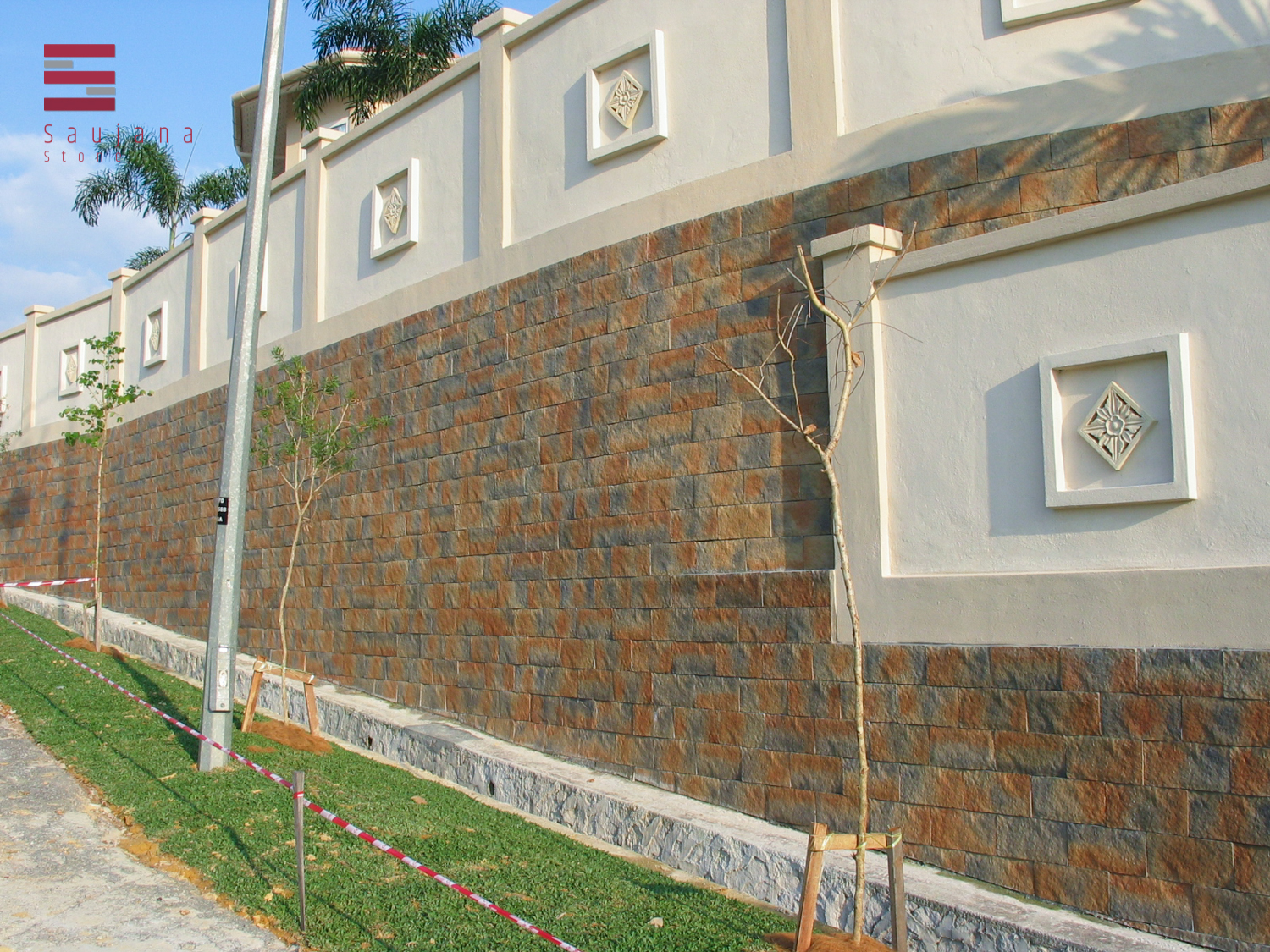 Saujana Stone’s Berkshire Castle Stone features a refined texture and subtle colour variation that evokes classical European masonry. The ashlar-style proportions and dressed edges deliver a sophisticated, enduring look for façades, pillars, and interior feature walls across Malaysia.