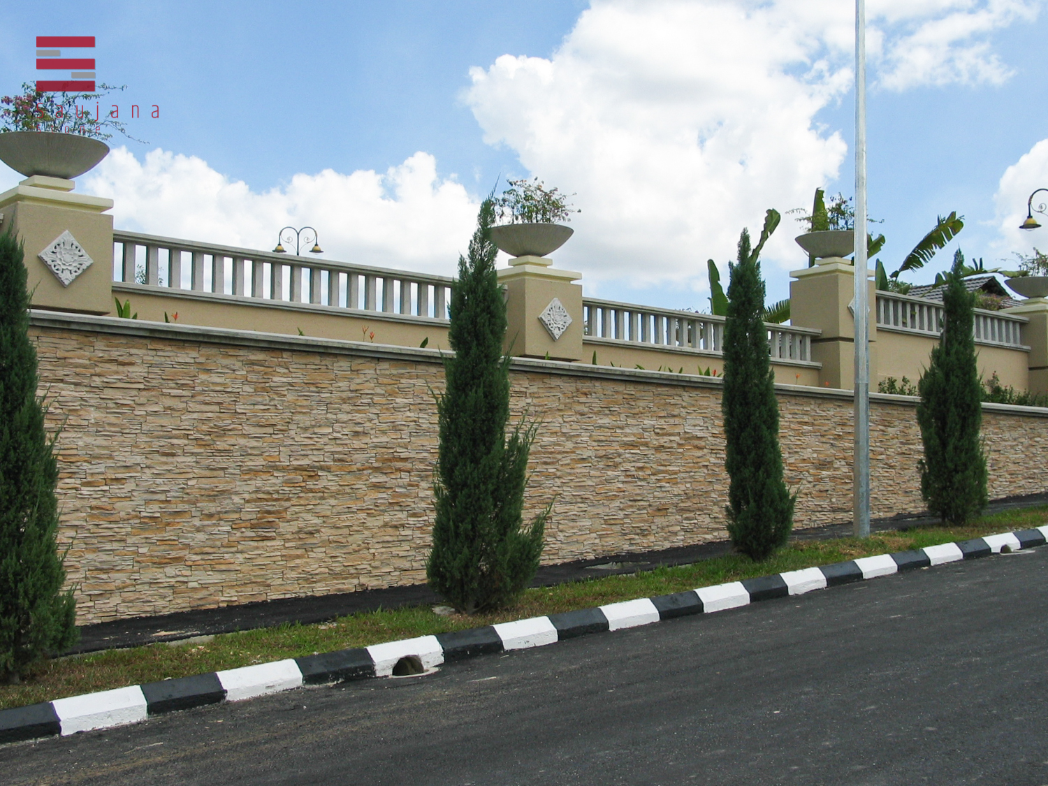 Saujana Stone’s Stacked Stone Veneer features rugged, horizontal coursing that evokes hand-laid masonry, adding shadow play and visual depth to façades, columns, and interior feature walls. With a coarse texture and natural variation, this stone veneer delivers an earthy, grounded aesthetic suited to both indoor and outdoor applications across Malaysia—an ideal choice for architects seeking disciplined lines with organic character.